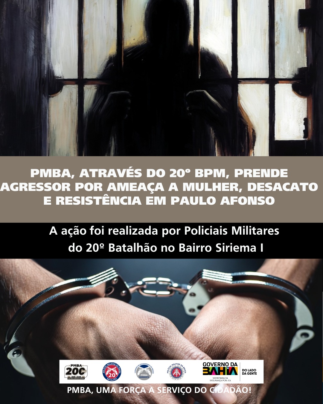 Na noite de sábado, 24, policiais militares do 20º Batalhão, sob o comando da Tenente-Coronel PM Emília Neta, agiram com firmeza para prender um homem acusado de violência doméstica no bairro Siriema I, em Paulo Afonso. A ocorrência evoluiu para desacato e resistência, exigindo técnica e pulso firme da guarnição.