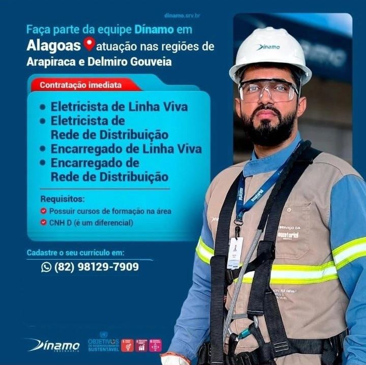 A Dínamo Engenharia, empresa que desde 2008 atua como parceira estratégica de grandes distribuidoras de energia no Brasil, anunciou a abertura de um processo seletivo para contratação imediata em Delmiro Gouveia. A iniciativa visa reforçar o quadro técnico da companhia para atender às demandas de infraestrutura elétrica no Alto Sertão alagoano.