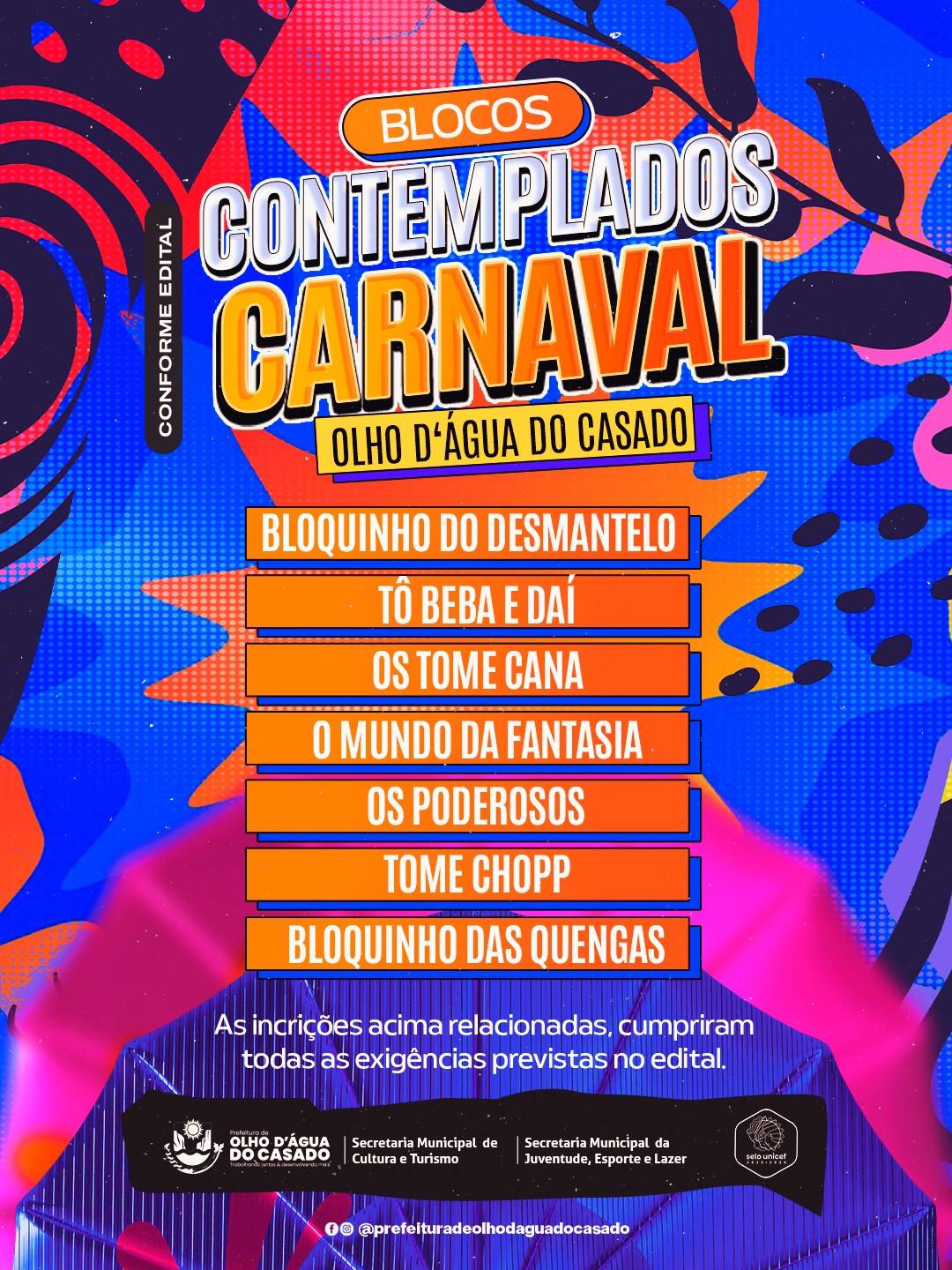 “Já dá para conferir quais blocos terão o nosso incentivo para colorir, animar e ocupar as ruas casadenses”, destacou a Secretaria em nota oficial, convidando a população a preparar seus estandartes para a folia que se aproxima.