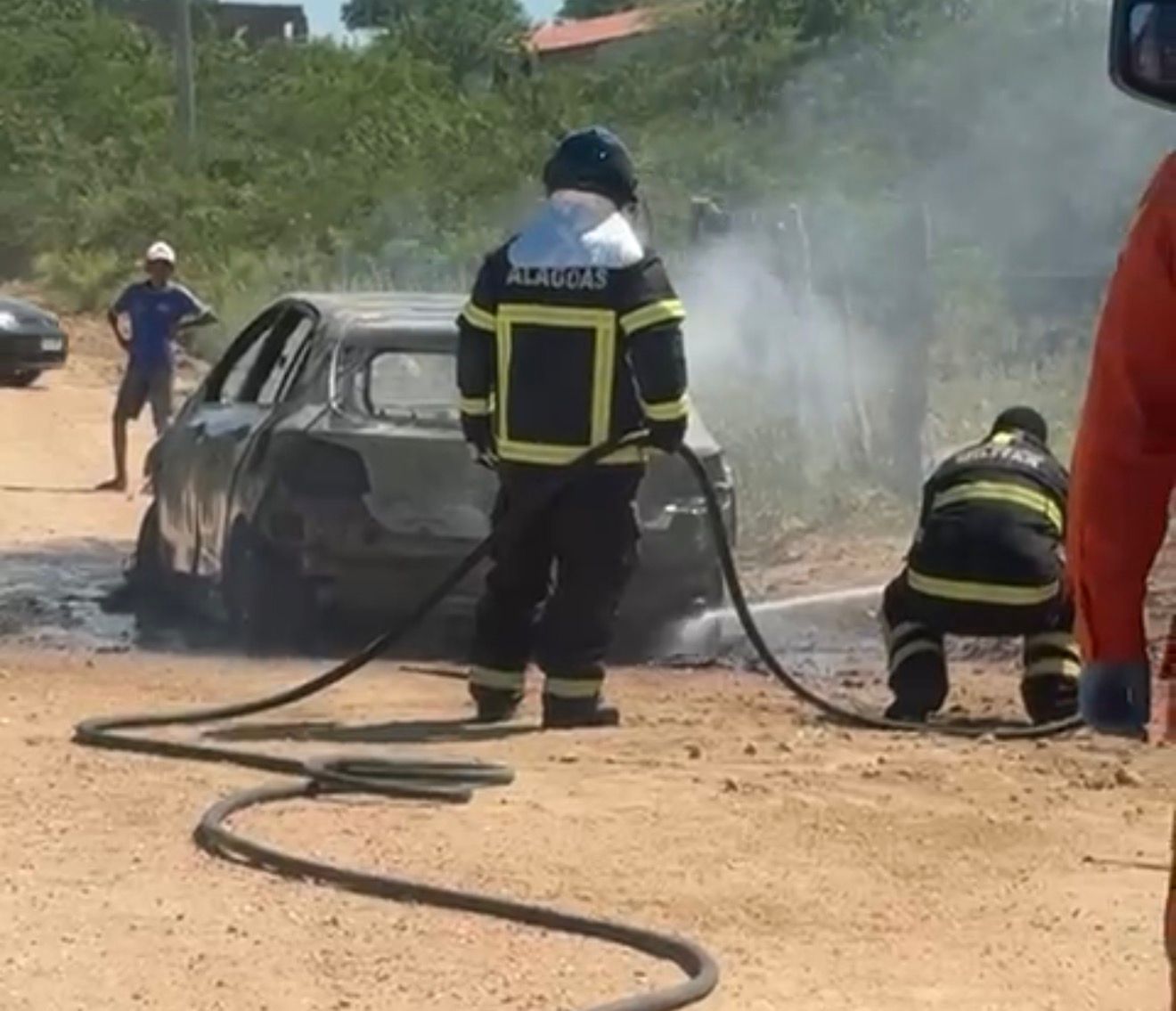 De acordo com informações do Corpo de Bombeiros Militar de Alagoas (CBMAL), a ocorrência foi registrada por volta das 13h24, na estrada que dá acesso ao povoado Salgado. O veículo, um Chevrolet Onix, era ocupado por uma família quando apresentou uma falha mecânica e acabou sendo tomado pelas chamas.