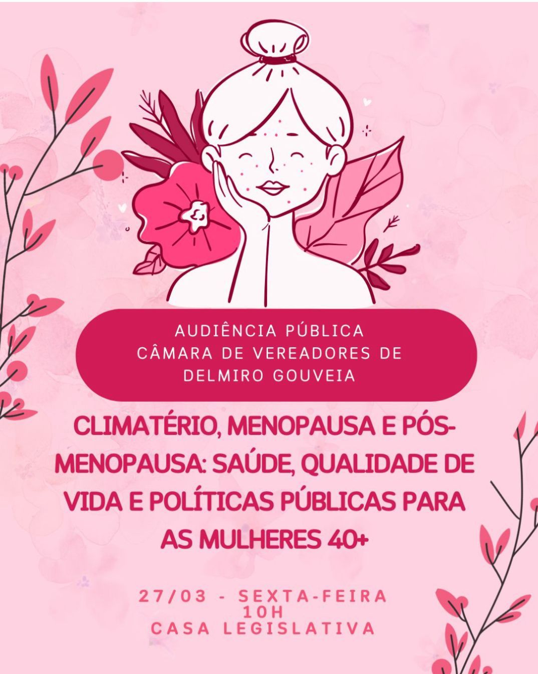 Nesta sexta-feira (27), a Câmara de Vereadores de Delmiro Gouveia realiza mais uma Audiência Pública. O evento, proposto pela Vereadora Fabíola Marques, acontece às 10h e aborda um tema de grande relevância para as mulheres a partir de 40 anos – climatério, menopausa, pós-menopausa e as políticas públicas ofertadas para este público.