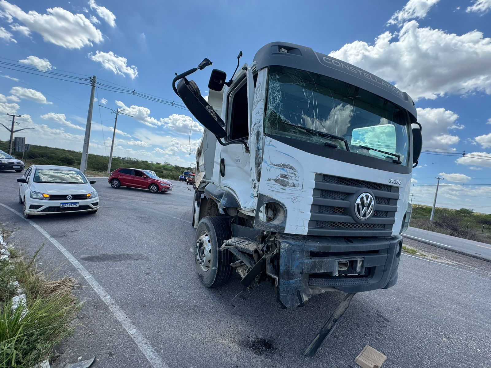 Condutores dos veículos pesados não se feriram; vítima da moto foi socorrida pelo APH e levada ao HRAS. Um acidente