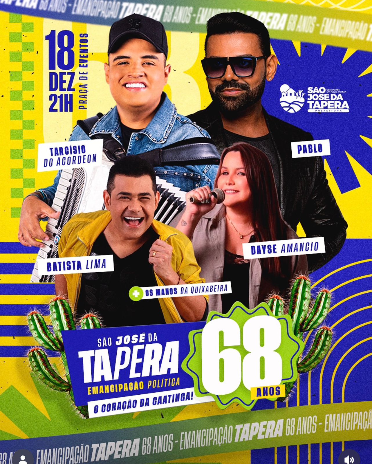 Aniversário do “Coração da Caatinga” terá shows inesquecíveis com Pablo, Tarcísio do Acordeon, Dayse Amancio e Batista Lima no dia