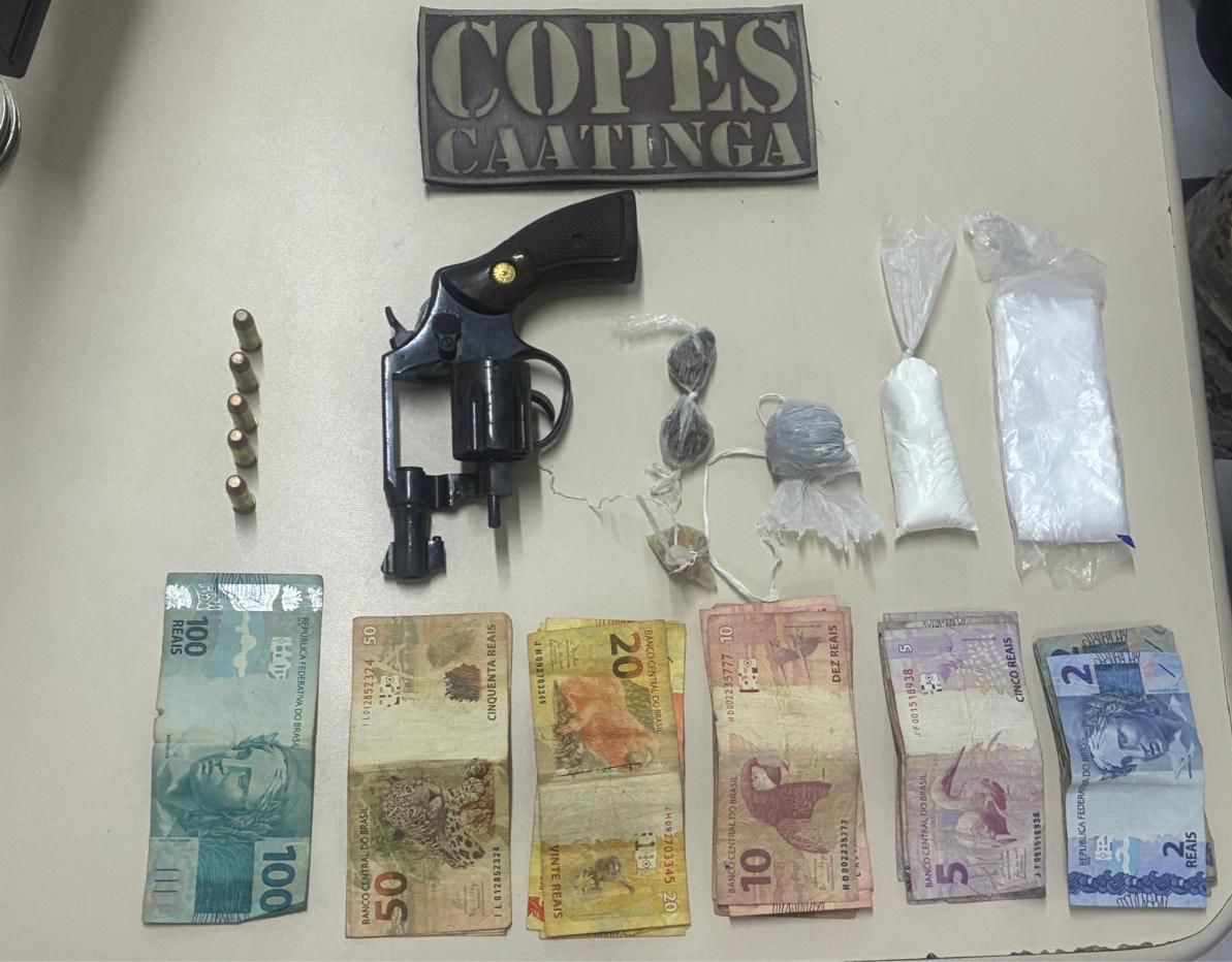 Ação do 7º Batalhão resultou na apreensão de revólver calibre 38 e porções de entorpecentes; no Agreste, outro flagrante de